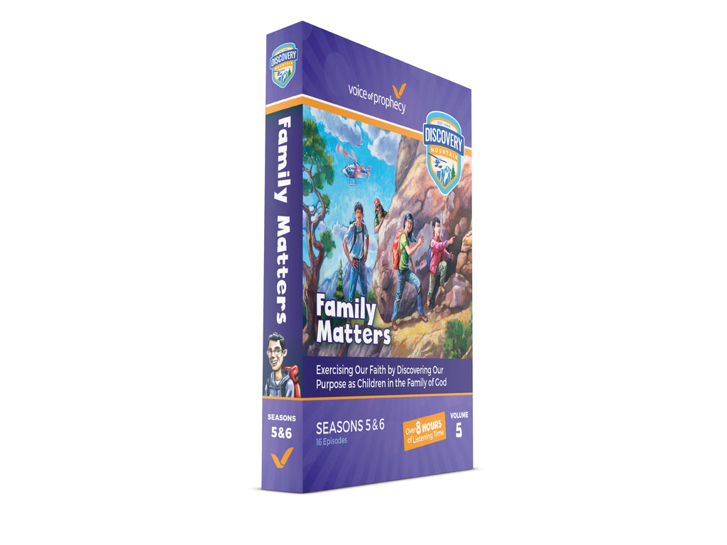 This 8-disc audio CD set contains seasons 5 and 6 of Discovery Mountain, the Voice of Prophecy’s Bible-based audio adventure series for kids. Each of the 16 episodes is around 28 minutes, 30 seconds long.