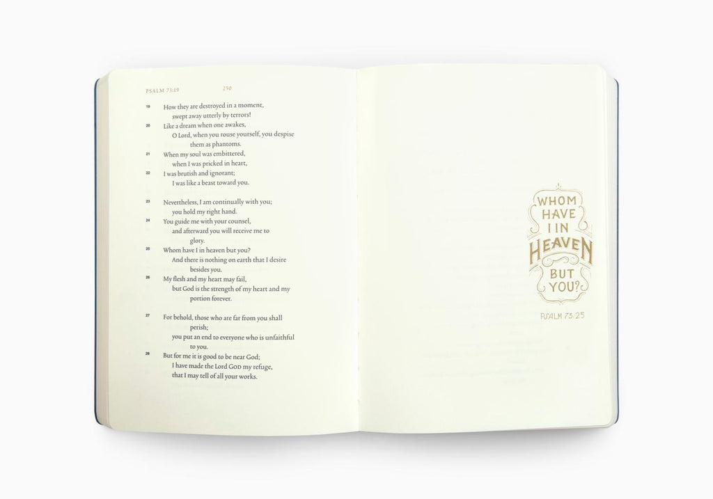 - Lightly dotted grid on blank pages opposite each page of Bible text