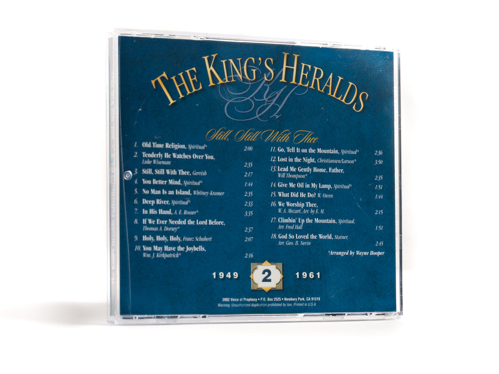 Wayne Hooper, quartet member from 1949 to 1962, created hundreds of arrangements for the quartet and spent two years restoring the King's Heralds archives to CD quality.