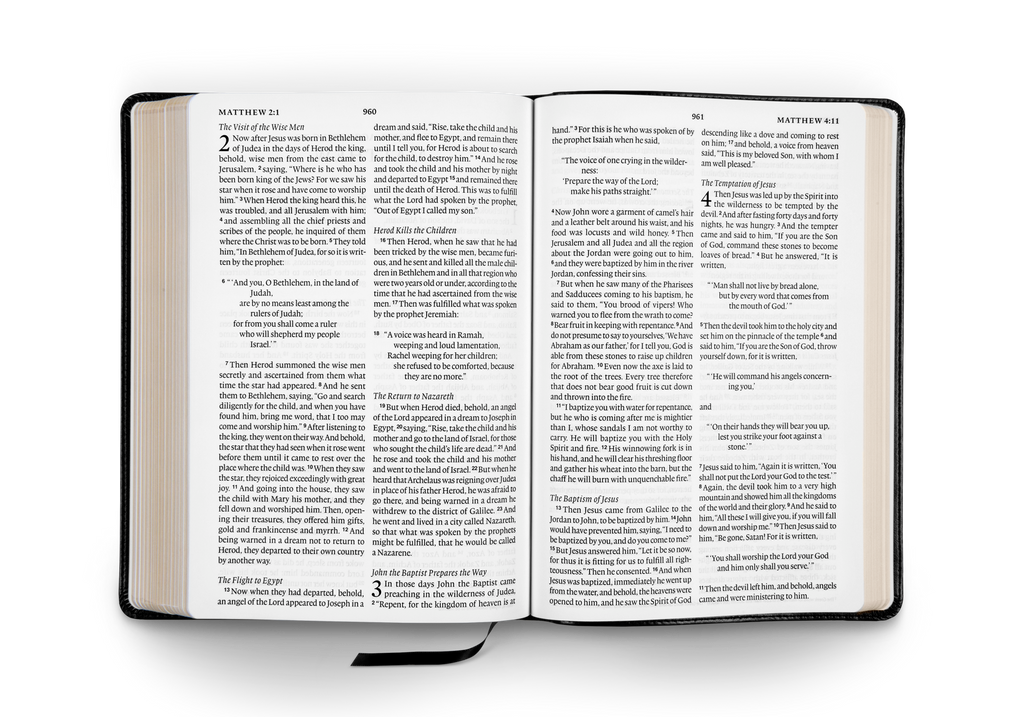 The ESV Large Print Bible features generous 11-point type and clear black letter text for easier reading and reference. A true large-print edition, it includes an extensive concordance and helpful full-color maps. Readers of all ages will find it ideal for daily reading and study.