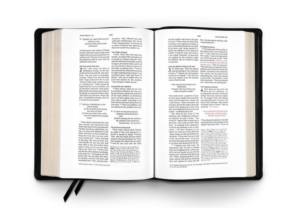 The ESV Wide Margin Reference Bible is perfect for those who interact closely with the Bible text. It features generous, 1-inch margins on either side of the text, providing plenty of room for personal note-taking. Other features include a concordance, full-color maps, and cross-references located in the corner of each page. This edition is ideal for all who want to record notes, thoughts, or prayers in their Bible.
