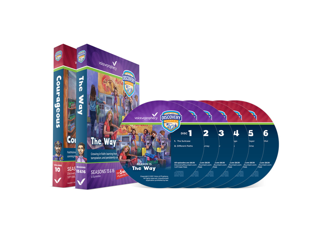 Join the dynamic characters of Discovery Mountain as they exercise their faith and learn how to persevere in the face of temptation and difficult circumstances. This 6-disc audio CD set contains Seasons 15 and 16 (detailed below) of Discovery Mountain, the Voice of Prophecy’s Bible-based audio adventure series for kids. Each episode (there are 12 in all) is approximately 28 minutes, 30 seconds long.