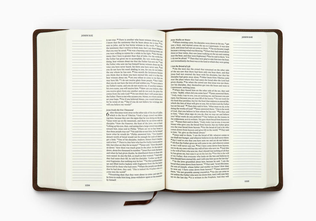 The ESV Single Column Journaling Bible, Large Print features the same high-quality Bible paper and two-inch ruled margins as the original ESV Single Column Journaling Bible, but now with larger, 9.5-point type. This new edition is perfect for those seeking a large-print Bible with plenty of space for notes, prayers, reflections, or artwork.